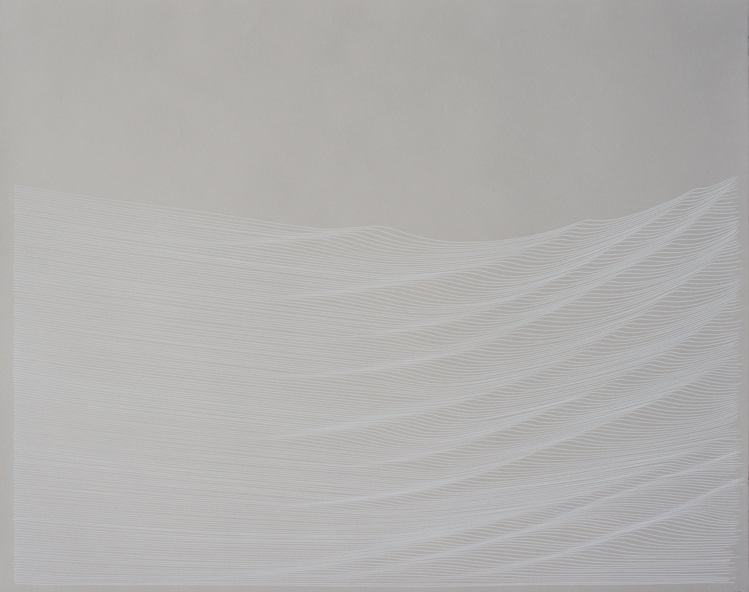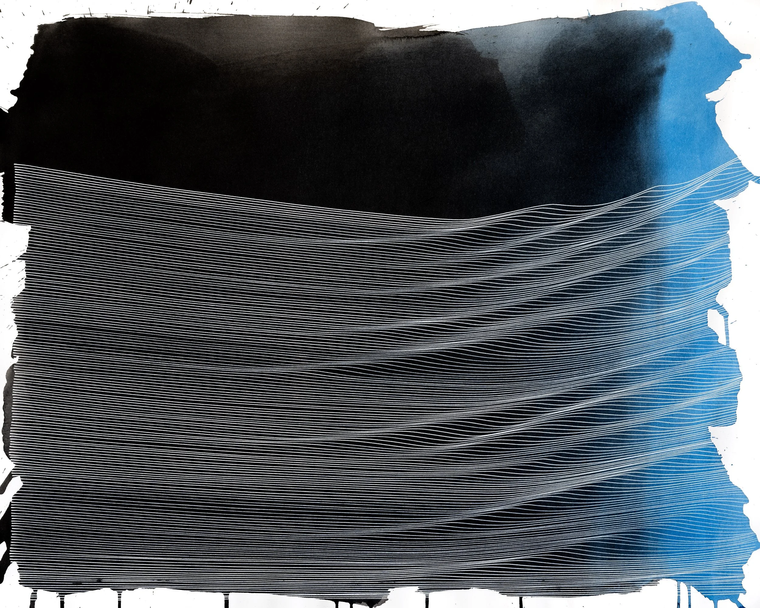 This series of "Exhale" drawings focus on the relationship between the artist and the process. Each freehand line is conducted for the length of one exhale and mimics the previous line. Beginning with the straightest freehand line possible, the "waves" begin to take shape as minor imperfections or bumps in one line are exaggerated through the following lines. Each line, one breath. No skipping ahead, no going back. Record each moment.