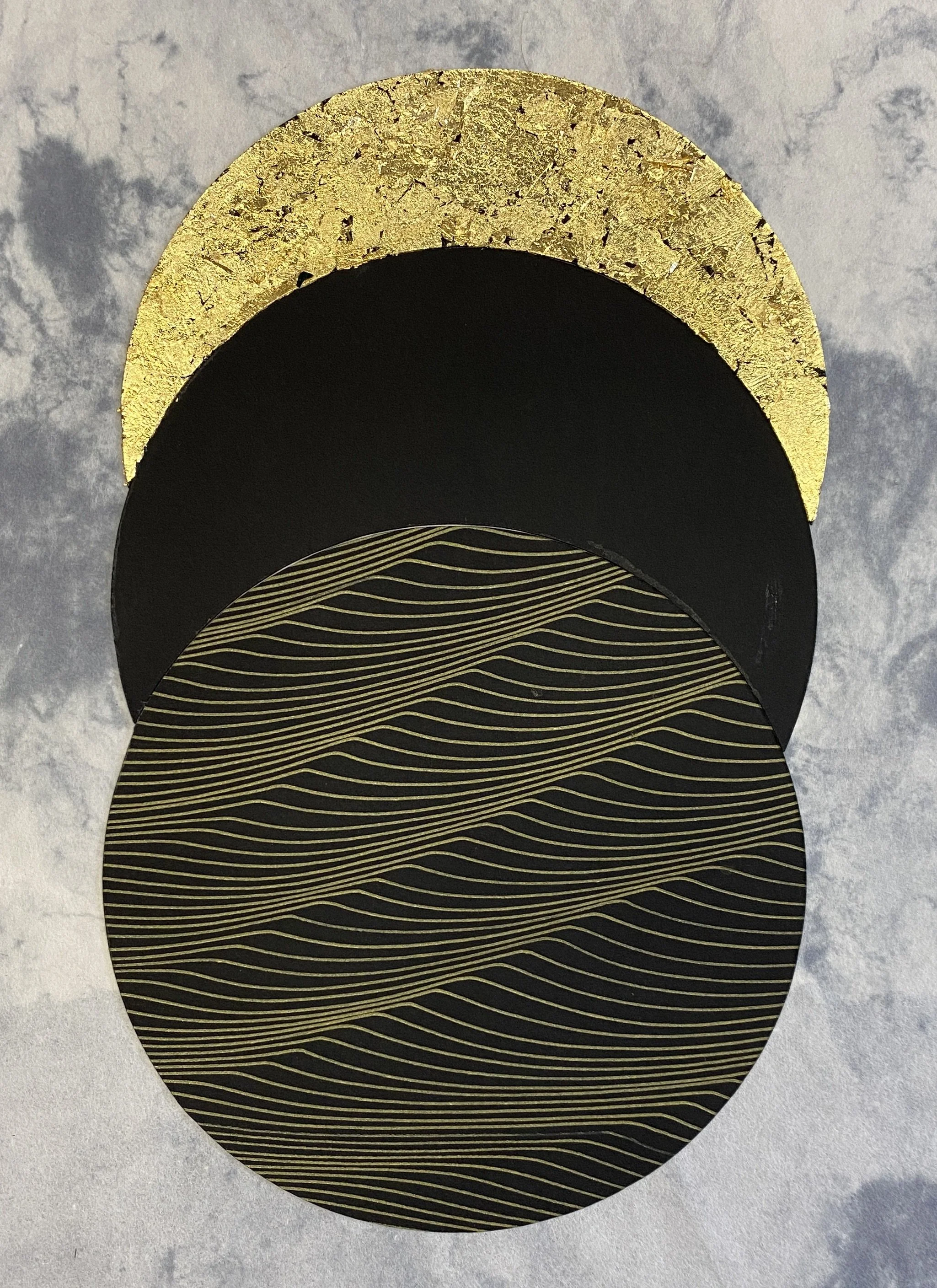 These special pieces were created as a collaboration between Marina Yermakova Timm and Mark J Rebennack. Two friends combining their styles to create something entirely new and visually stunning. The textures, layers and colors breathe new life into the styles of both artists.
